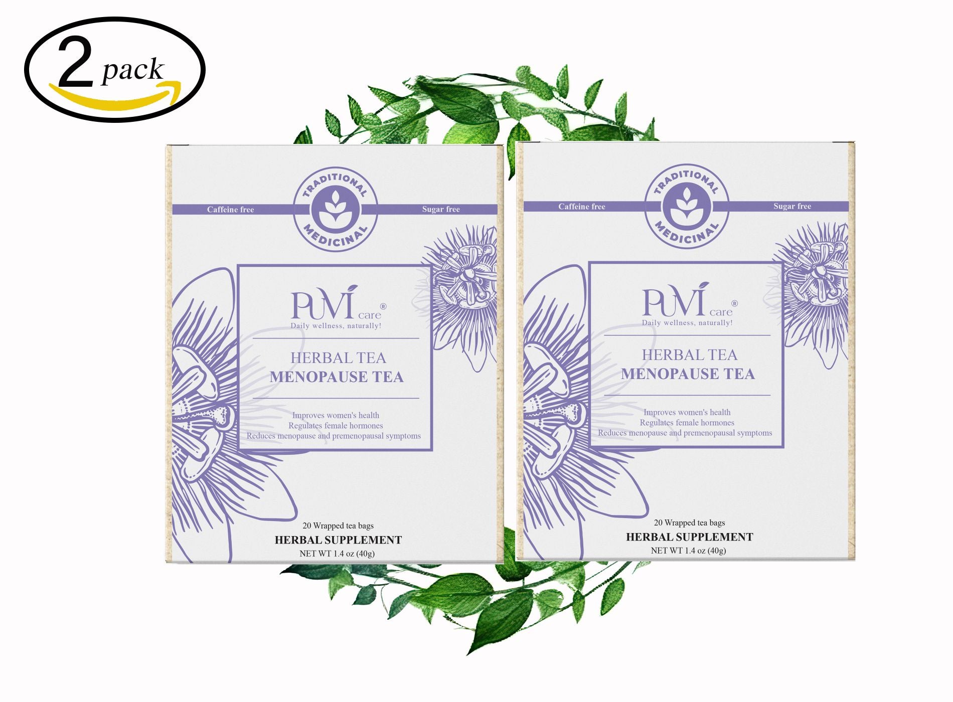 - Introducing Puvi Care Menopause Tea, the gentle, everyday herbal solution designed to support women through menopause with comfort and ease. Crafted with pure passionflower extract, this tea harnesses natural ingredients to help ease menopause symptoms such as hot flashes, circulation issues, sleep disturbances, and even vaginal dryness.